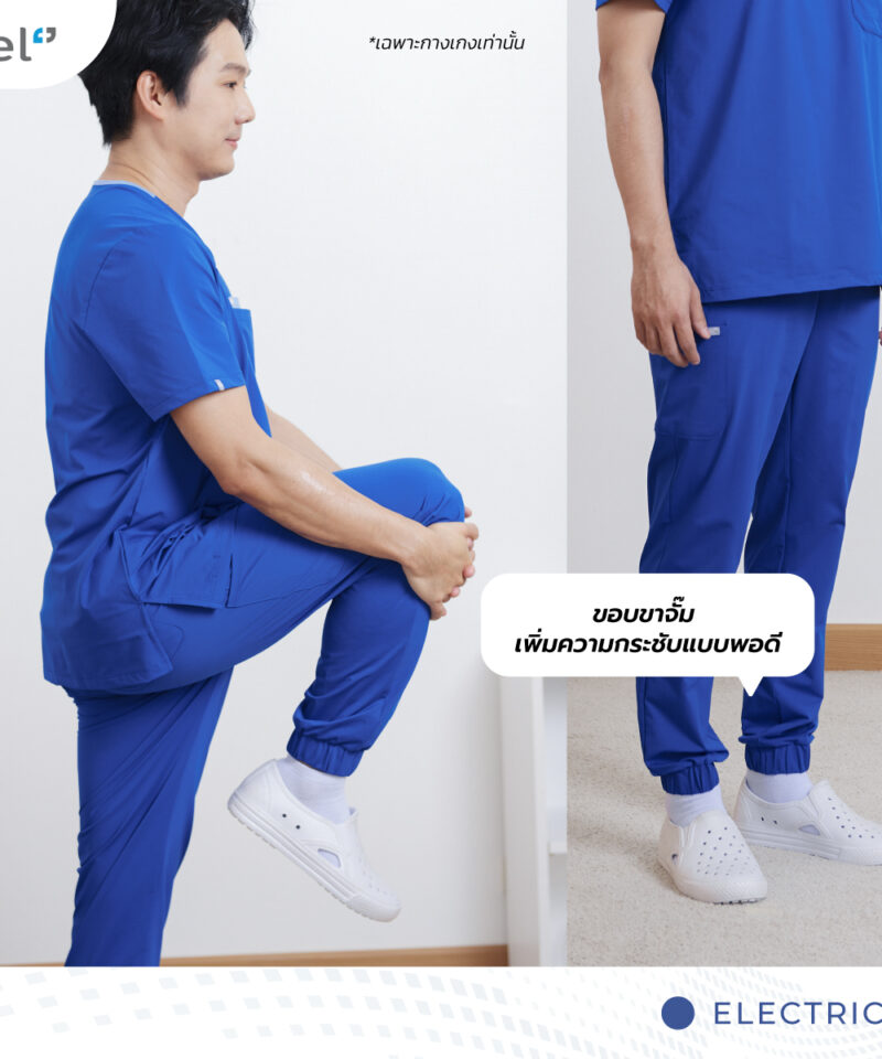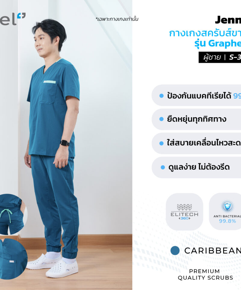 เนื้อผ้าใส่สบาย ชุดสครับส์ที่ยืดหยุ่นได้ทำให้การเคลื่อนไหวคล่องตัว ด้วยเทคโนโลยี ELITECH 360 ยับยาก แห้งไว และเนื้อผ้า มี เส้นใย “กราฟีน” ที่ฝังอยู่ในผืนผ้า ซึ่งช่วยยับยั้งการเติบโตของแบคทีเรียได้กว่า 99.8%